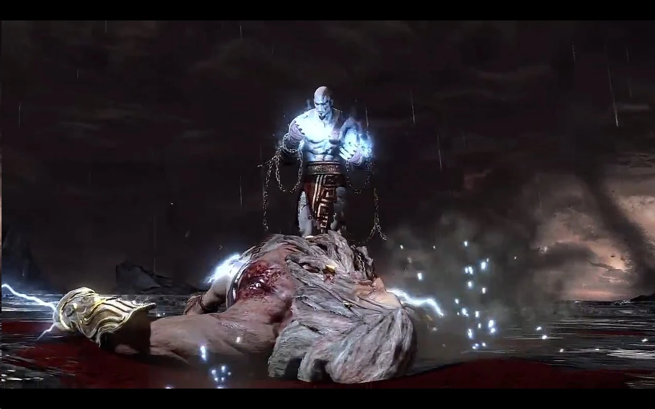 Nach dem Kampf erwacht Kratos auf dem Olymp neben Zeus, und zieht diesem die Klinge aus dem Körper. Während Zeus' Körper besiegt ist, erhebt sich dessen Geist und greift Kratos erneut mit einem Blitz an und, mit dem Tode ringend, sich in seiner eigenen Psyche wiederfindet. Dort vergibt er sich selbst für seine begangenen Sünden und lernt, dass Hoffnung die mächtigste Waffe ist, so wie es Pandora ihm vorausgesagt hatte. Kratos kehrt zurück ins Leben, befreit sich von den Angriffen Zeus' und tötet ihn ein für allemal.